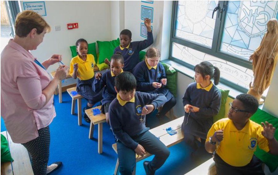 Our school chapel, located within the KS1 building, is a peaceful and welcoming space designed for quiet prayer and reflection. It offers a special place where children and their families can pause, find stillness, and connect spiritually within the busy rhythm of school life. The chapel plays an important role in nurturing our community’s faith, providing an environment that supports moments of calm, gratitude and personal prayer.