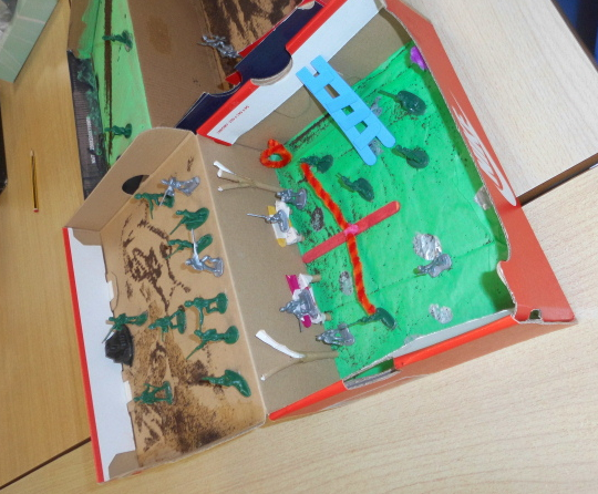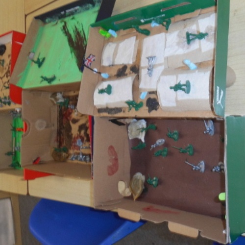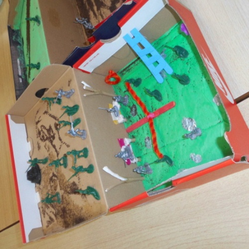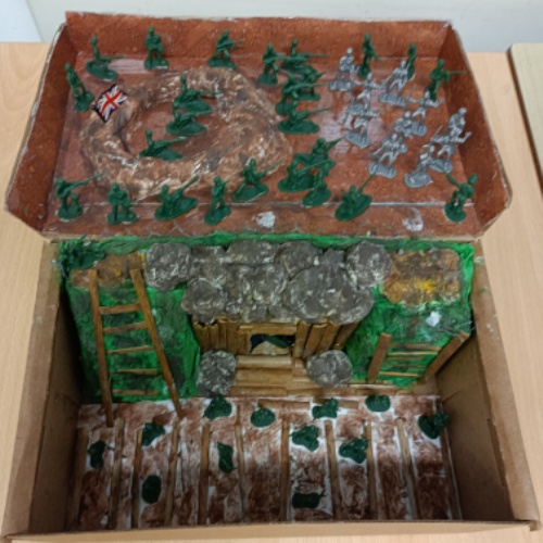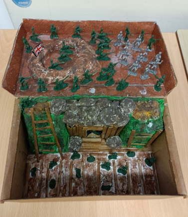 Model trench building had been something we had been looking forward to for weeks and weeks! The day finally arrived and there were many great collaborations. The materials were self-selected by each group and included everything from pipe cleaners to Oreos (yes, that's right – the chocolate biscuit!) The classrooms got messy, but at the end of the day, some brilliant models made and much fun was had.